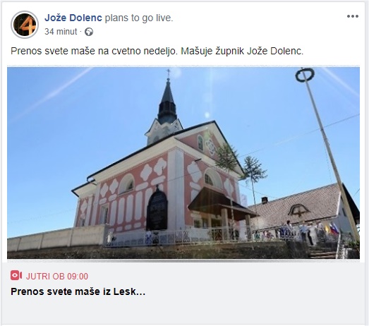 Iz naše župnijske kapele načrtujemo prenose svetih maš v živo (preko FB), in sicer na