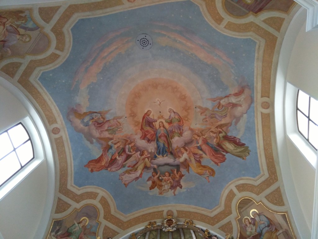 Na Zaplazu, v romarski cerkvi Marijinega vnebovzetja, je naš župnik g. Jožef Dolenc daroval sveto mašo. Pri tem smo se spomnili prve obletnice svetega misijona v Leskovici kakor tudi prikazovanja Marije v Fatimi pred 100 leti (prikazovanja od 13. maja do 13. oktobra 1917). Sveta daritev je potekala pri stranskem oltarju, katerega poslikava je delo p. Marka Ivana Rupnika.